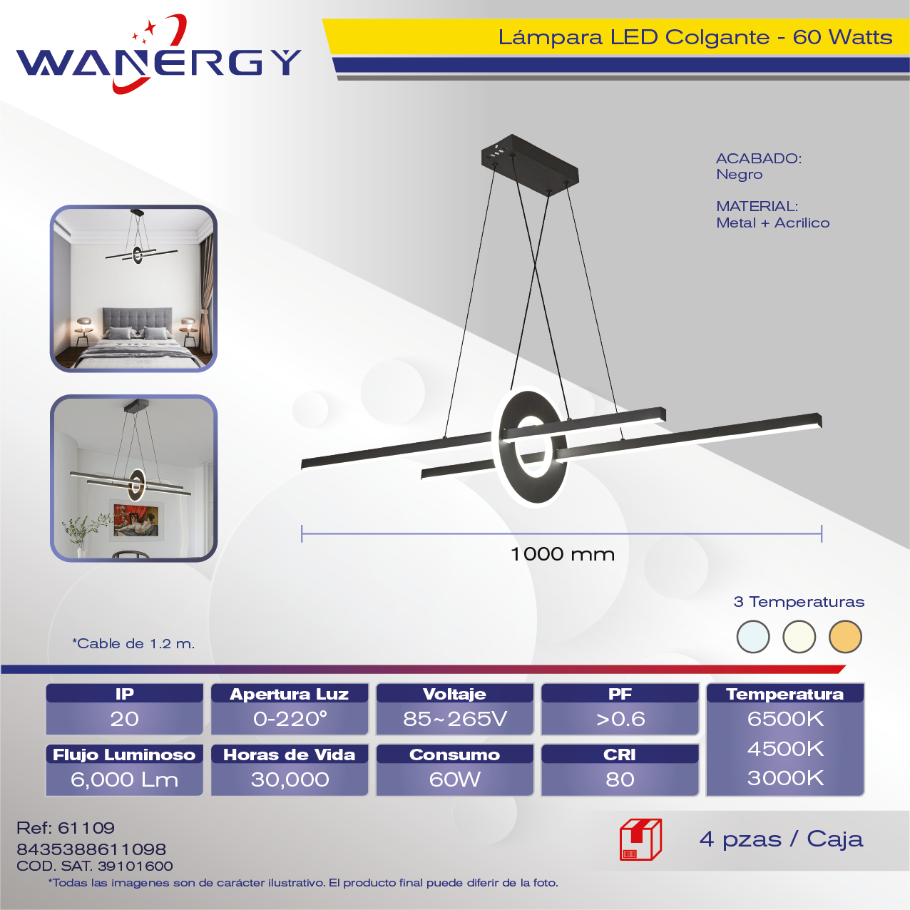 Transforma tus espacios con la Lámpara Colgante Moderna 61109✨, una combinación perfecta de metal + acrílico que aporta estilo y funcionalidad a cualquier ambiente. Su diseño minimalista y sofisticado en color negro se adapta a salas, comedores, oficinas o cualquier espacio que desees iluminar con un toque moderno.